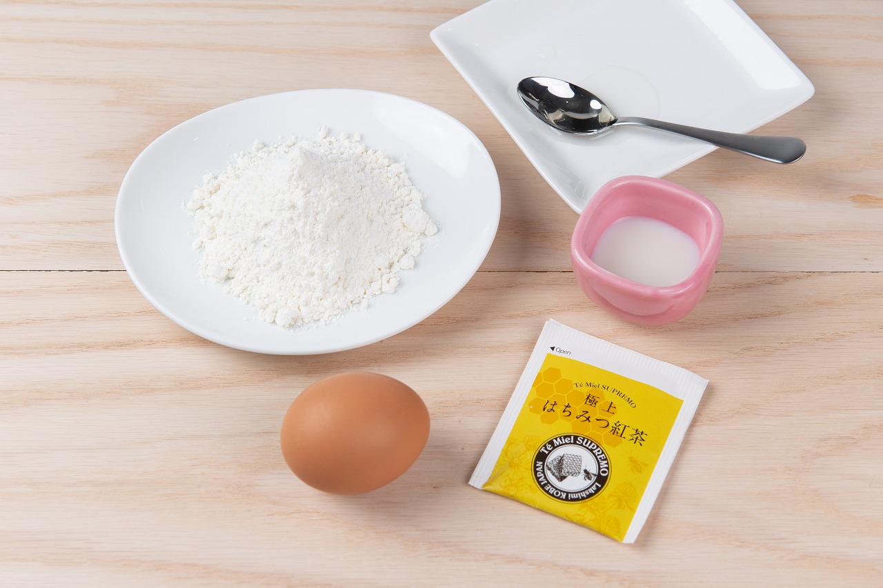 ① 極上はちみつ紅茶のティーバッグを開け、材料のお湯でふやかす。
